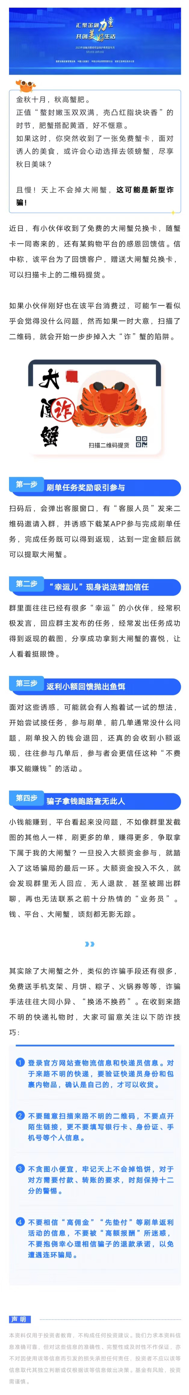 【防范非法证券活动 】大闸蟹?大“诈”蟹!警惕新型诈骗!