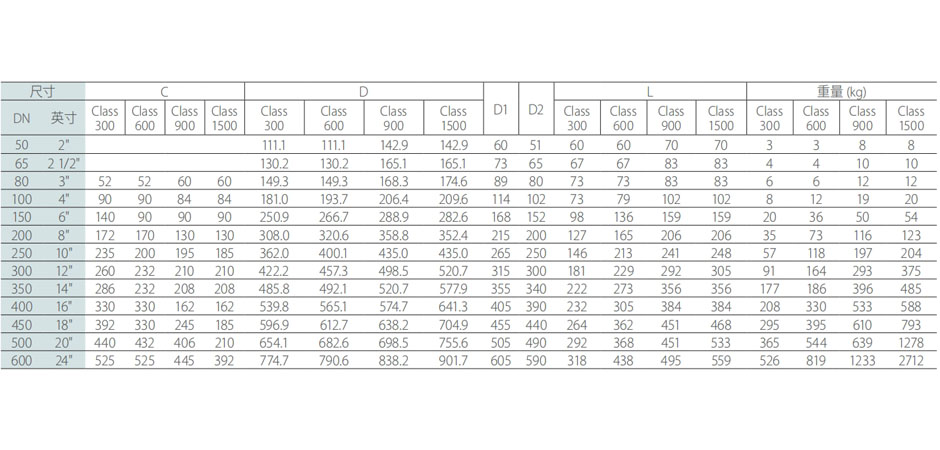 | 连接标准 | 对夹式 | | 公称直径 | DN50-DN600 | | 压力等级 | ANSI CLASS300, ANSI CLASS600, ANSI CLASS900, ANSI CLASS1500 | | 结构长度 | API 594 | | 钢体涂层 | 碳钢为喷涂系列B |