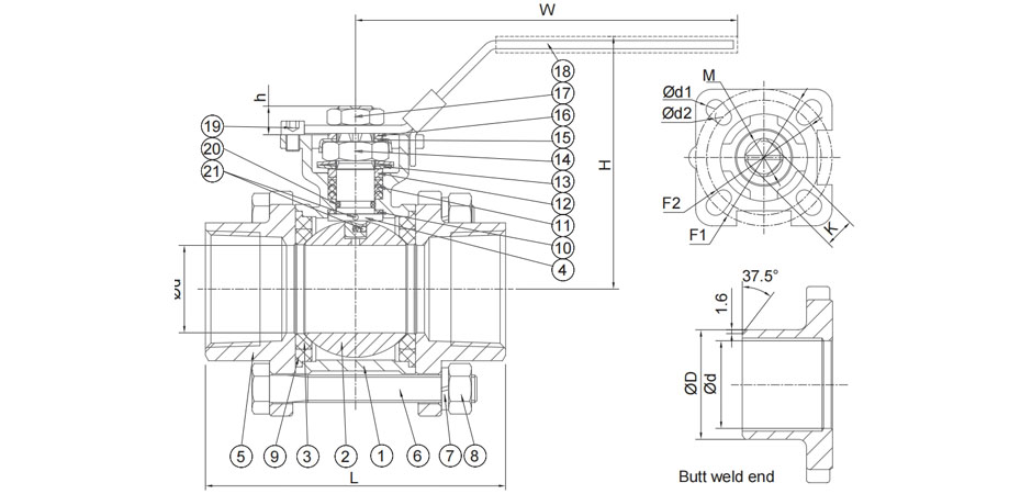 B35系列带ISO上法兰三片体球阀是全通径设计,适用于阻断各种空气、气体、水、油、液等无杂质介质。三片体设计使得维修方便,无需拆卸阀盖。这种阀门的对焊和螺纹焊备受欢迎。