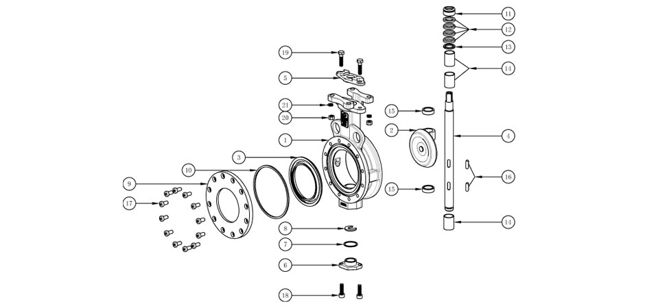 对夹式设计使阀门便于法兰之间的连接,并节省管路长度。