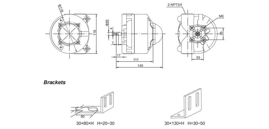 P60系列限位开关安装在气压传动装置上,用于显示阀门的开启或关闭位置并发出信号。防爆设计是为了防止任何火花产生到环境中。