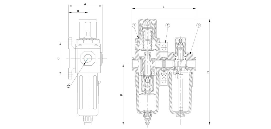 P31系列空气过滤器用于将空气中的水和微粒去除以保护气压传动装置。